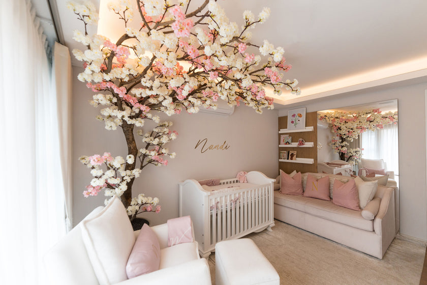 We designed this enchanting nursery for a baby girl, with a statement cherry blossom tree bringing whimsical beauty and a touch of nature indoors. Soft whites, blush pinks, and hints of gold create a delicate, feminine palette that feels both calming and elegant. The cascading blossoms of the tree add texture and charm, becoming the heart of the room and a symbol of new life. Every detail was chosen to create a serene, magical space for her to grow, dream, and thrive.